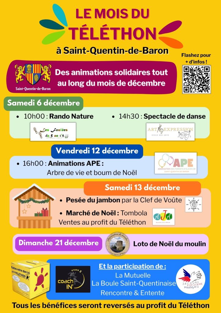 Cette année, le Téléthon ne se limite pas à une seule journée ! Dès le 6 décembre, les festivités débutent, avec des animations et manifestations tout au long du mois, organisées par les associations locales.