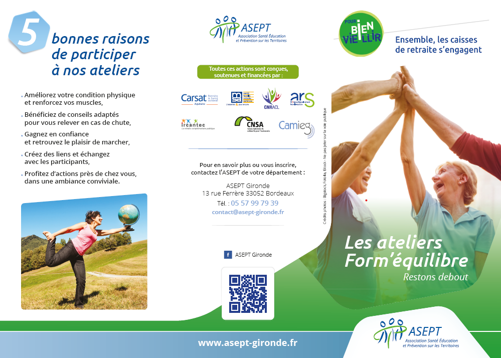 Le CCAS et l’Association Santé, Éducation, et Prévention sur les Territoires (ASEPT) organisent les ateliers Form’équilibre : un programme gratuit destinés aux personnes de 55 ans et plus souhaitant prendre soin de leur santé et travailler leur équilibre pour prévenir les chutes.